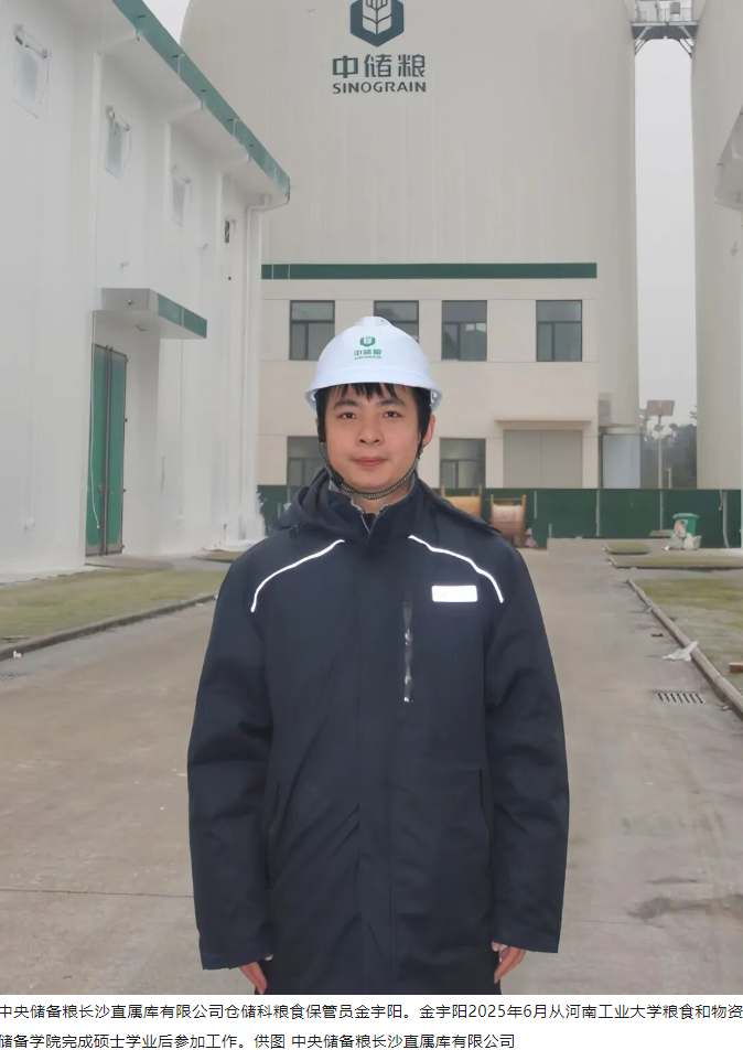 晚上九时许,金宇阳正打着手电筒逐一仔细检查粮仓外的电源控制柜、智能通风控制柜以及粮食出仓的卸粮口。去年6月从河南工业大学粮食和物资储备学院完成硕士研究生学业后,金宇阳考入中央储备粮长沙直属库有限公司,成为一名保管员。这位年轻的粮食保管员不但要负责库区5个平房仓的粮食保管,还要接手这5座气膜仓的管理。这5座落地式粮食气膜仓预计将于今年3月份完成竣工验收,4月份迎接首批“住户”——大豆。同一个粮食气膜仓,这次存放大豆,下次可能就改存玉米、稻谷或小麦。如何应用好这一新仓型、新技术,让不同“住客”住上舒服的房子,这也是金宇阳将“接棒”探索的课题。