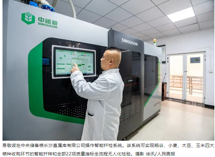 此外,在粮食收购方面,成都储藏院自主研发的智能扦检系统也将助力,可实现稻谷、小麦、大豆、玉米四大粮种收购环节的智能扦样和全部22项质量指标全流程无人化检验,效率较传统人工提升2倍以上。