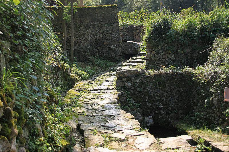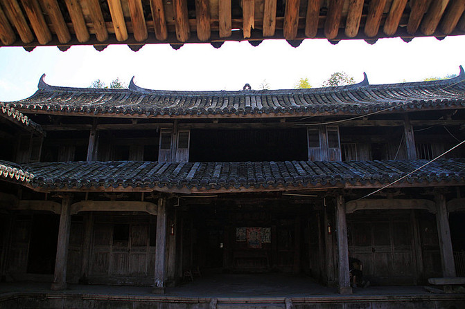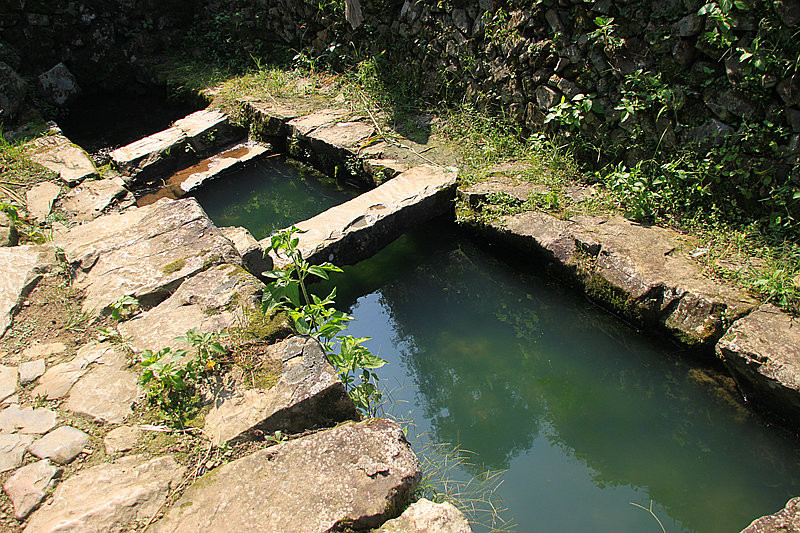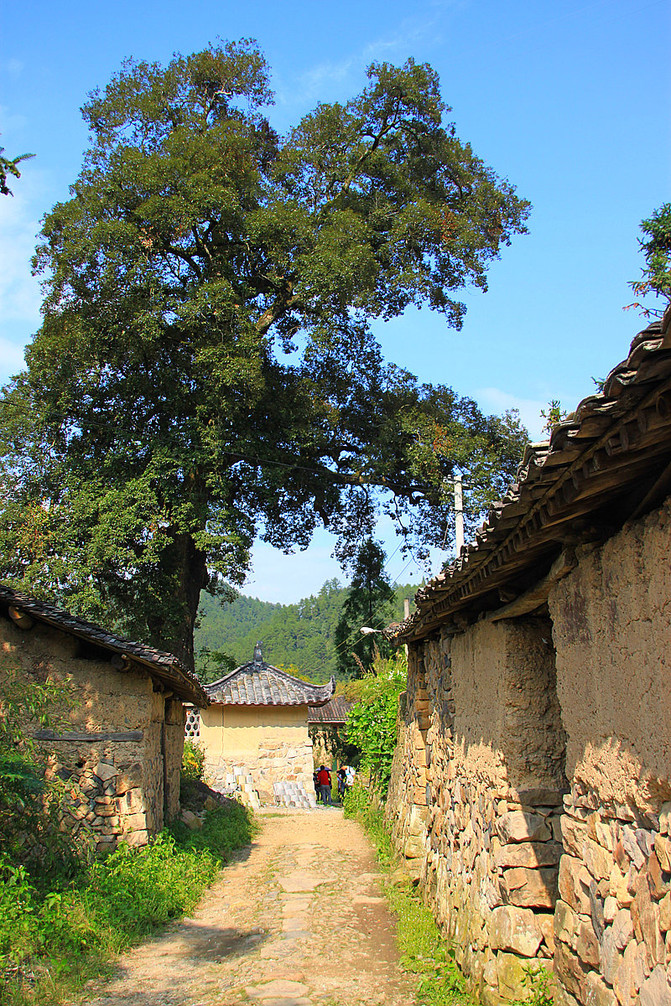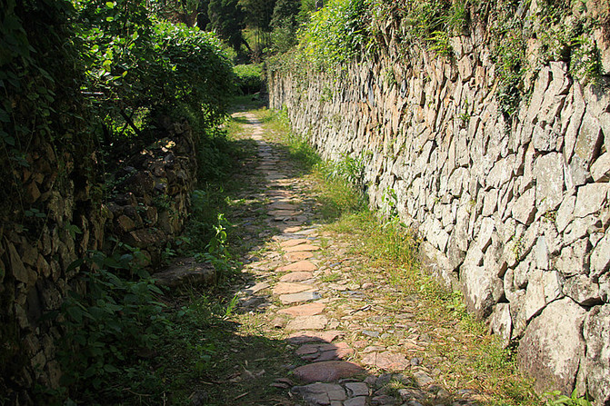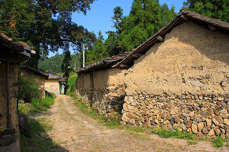 村中,古木参天,山泉潺湲,遍布茂林修竹,给人视觉上、听觉上带来一种野性的愉悦。这里的“野性”,指的是“野趣”,再具体说就是“村野之趣”。一条鹅卵石铺就的小径把我们带到村里,两边的民居错落有致,就像散文章句,既有整句,也有散句。农田、菜畦散落其间,又如文章作法,既有描写,又有抒情,形成了“田中有村、村中有田”的山村风貌。