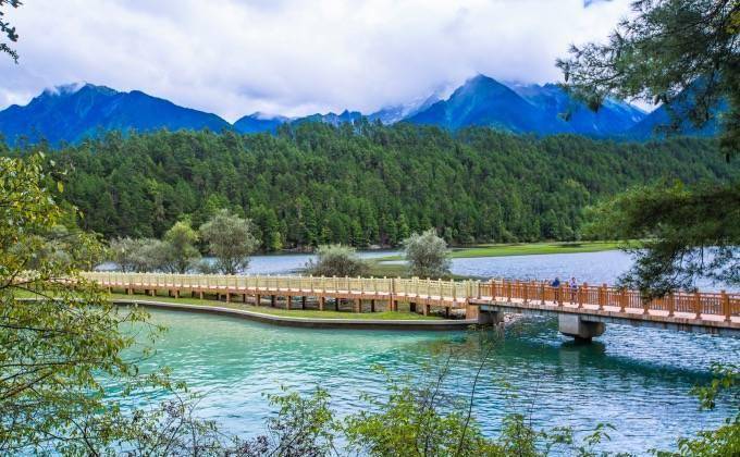 一座长长的木桥横跨在河上,将人与自然带入了无缝的距离。
