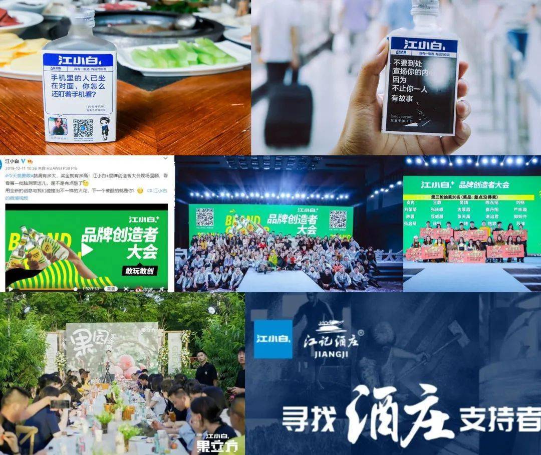 表达瓶,品牌创造者大会、共创果立方、“江记酒庄支持者”计划……,江小白一路走来,尽管曲折,依旧引领。