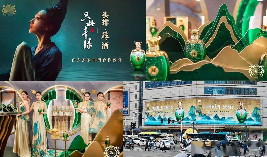 甚为遗憾的是头排苏酒绑定了「只此青绿」,没有深度的挖掘为一种「绿色&中国式优雅浪漫」的新生活观念,仅仅以视觉和活动视觉出街。
