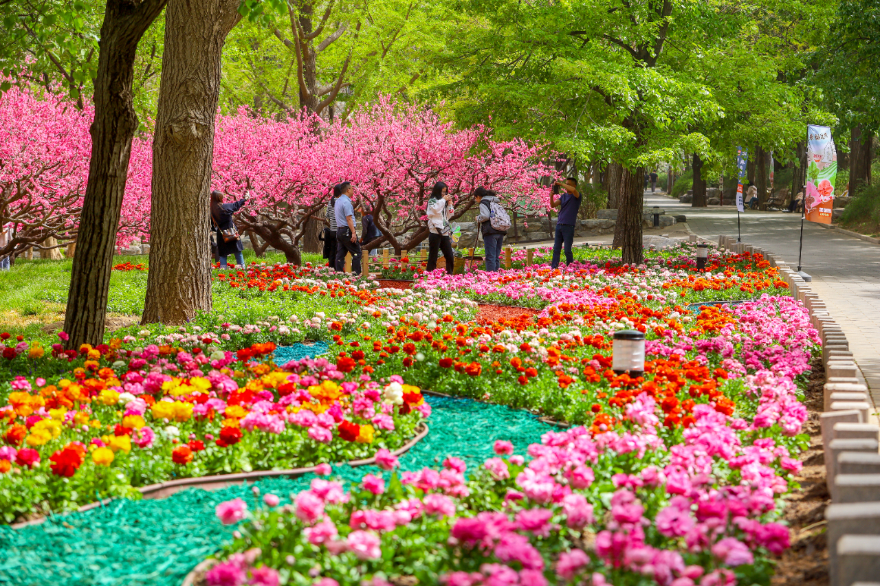 此外,知松园等处也布置了花径景观,总布展面积2200平方米,主要使用花毛茛、冰岛虞美人、毛地黄、南非万寿菊、巨无霸海棠、孔雀草、美女樱等38种花卉、15000余株,其中作为香山山花观赏期的主打花卉6000余株花毛茛均为公园自主培育。