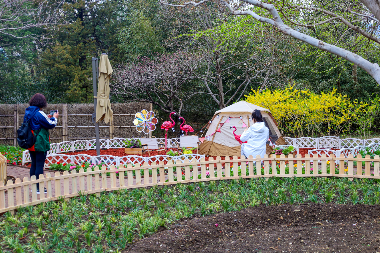 人们常说:北京的春天美好但短暂。香山作为距离市区最近的山林公园之一,温度略低于城区,山花观赏时间也较长一些,目前,园内丁香、海棠、连翘、菊花桃、二月兰等各色自然山野花卉竞相开放,延续着春天的勃勃生机。今年的山花观赏期期间,公园在南北主干道分别布置了主题花卉小品景观,在枫林村以“自然之约”为主题,用帐篷、兔子、火烈鸟等小品打造出休闲营地;在佳日园以“在水一方”为主题,乘坐着木船的可爱小兔子,驶向鲜花的海洋;在索道下站以“温馨定格”为主题,通过木质框架将花卉化为一幅幅“装饰画”,大力倡导人与自然和谐共生的理念。