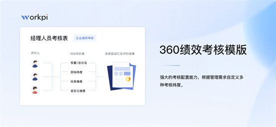 workpi提供多维度考核模板以及多行业标准参考,可以帮助组织成员快速进入角色。拥有灵活、全面、丰富的360°绩效考核,支持不同考核维度和评价阶段的设置,在评价过程中可进行穿透浏览和数据验证,并能自动评分汇总和导出报表。通过全面绩效评估,做到考核公平公正。