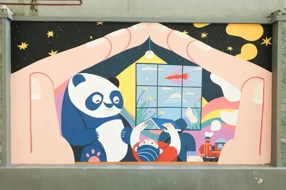 黄浦区淮海中路街道则呈现了中国插画艺术家Jazzy的作品《守护》,以一双温柔而有力量的手,托起儿童天马行空的梦境,为他们的快乐成长、勇敢逐梦保驾护航。这些灵动的作品和神奇的色彩不仅让上海老小区年久失修的墙面焕然一新,也为社区的孩子们营造出更友好、和谐的成长环境。