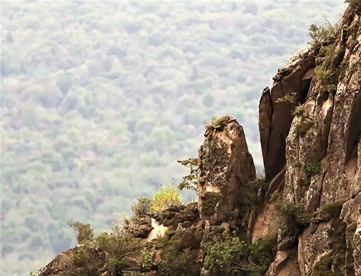 “鸡冠”是蜿蜒突兀在林海中的奇特花岗岩地貌——锯齿状起伏的石柱墙。还有像巨型石块垒砌的城堡残垣断壁,整体又似石长城。单体千姿百态,棱角分明,成景岩石是石英含量高达90%的花岗岩相比普通花岗岩硬度更高,为花岗岩地貌中罕见的奇观。