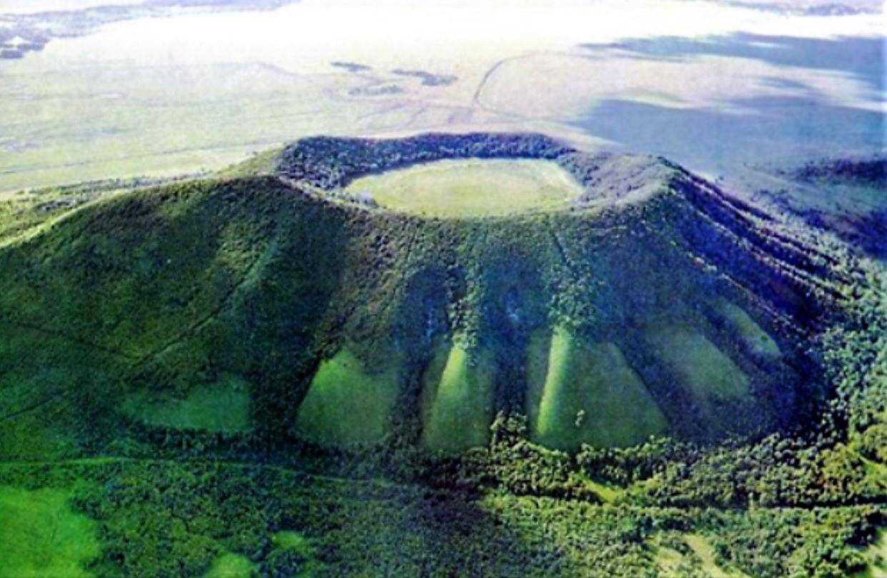 周边还有火山群地质遗迹。奇特之处在于,14座火山锥呈北东向和北西向连线的棋盘格形布局,成为“整齐”排列的火山锥群奇观。成因可能与地壳-地幔深处的两条交叉断裂带有关。而这两条交叉断裂又与小兴安岭的造山隆起相关联。