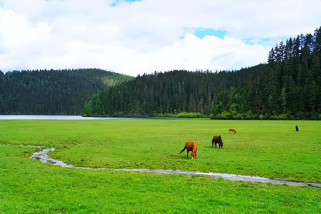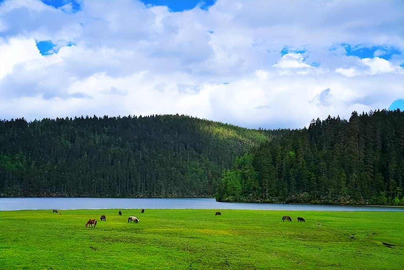 香格里拉牧场公园位于香格里拉县城西北约15公里处,占地广阔,囊括了高山草甸、原始森林、湖泊和丰富的自然资源。这里夏季的最高温度很少超过摄氏13度,被誉为天然的避暑胜地。它的独特之处在于,不仅可以近距离欣赏鲜花盛开的美景,还可以亲近牛羊和其他野生动物,感受它们在自然环境中的自在生活。