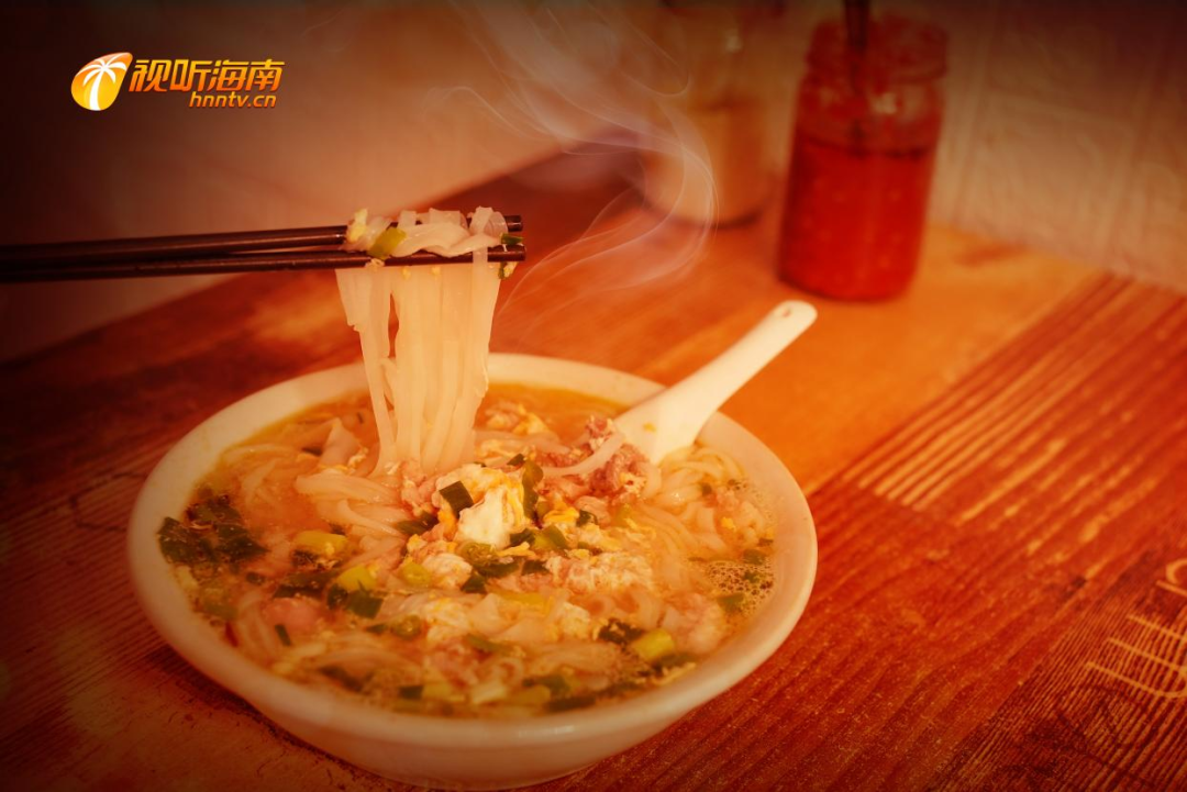 海南粉汤·猪骨熬制十几个小时的汤头,加上几颗海螺提鲜,粉汤味道鲜美清甜,粉汤的灵魂是蒜头油和辣椒油,海南人的早餐吃上一碗粉汤,这一天才算真正的开始。