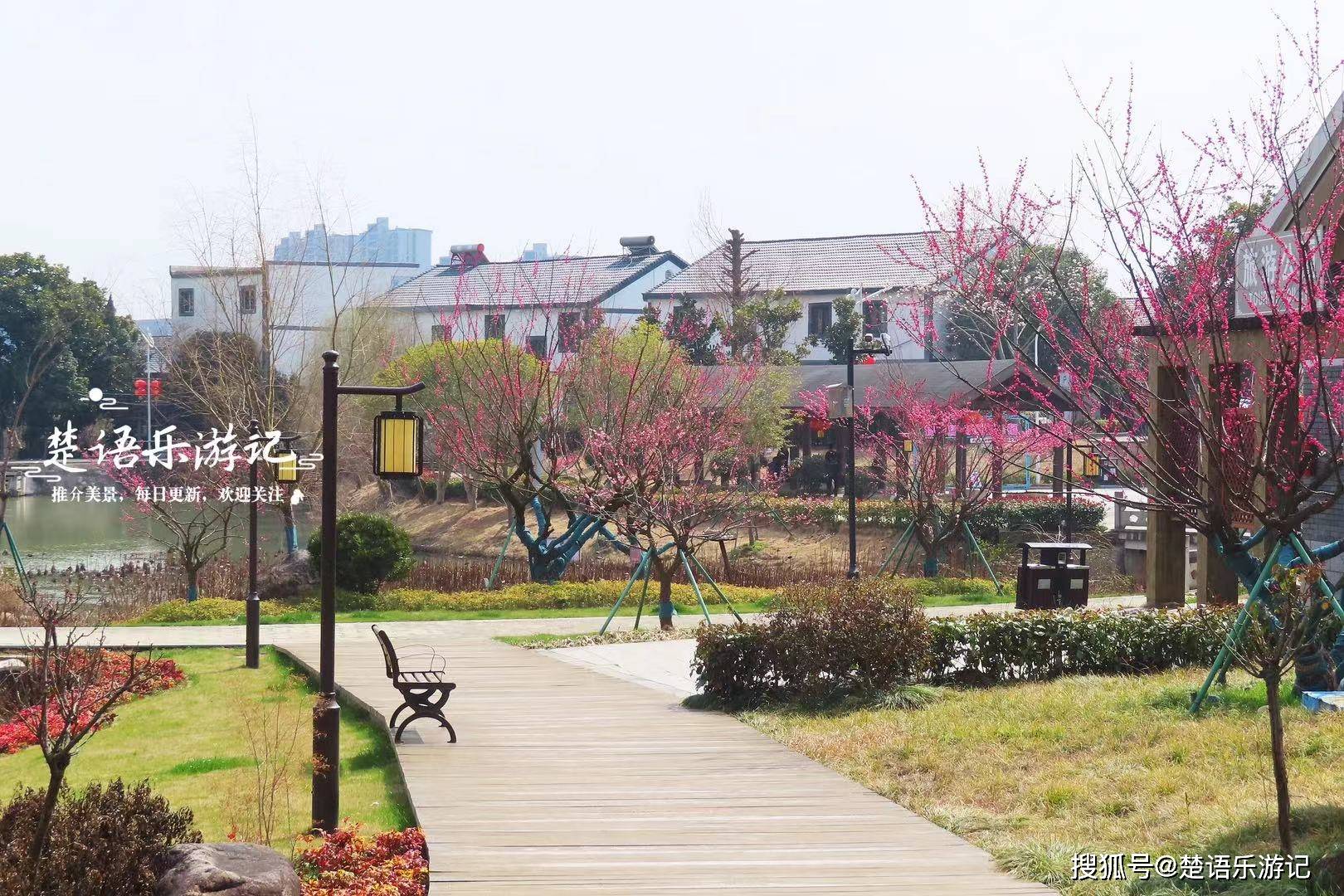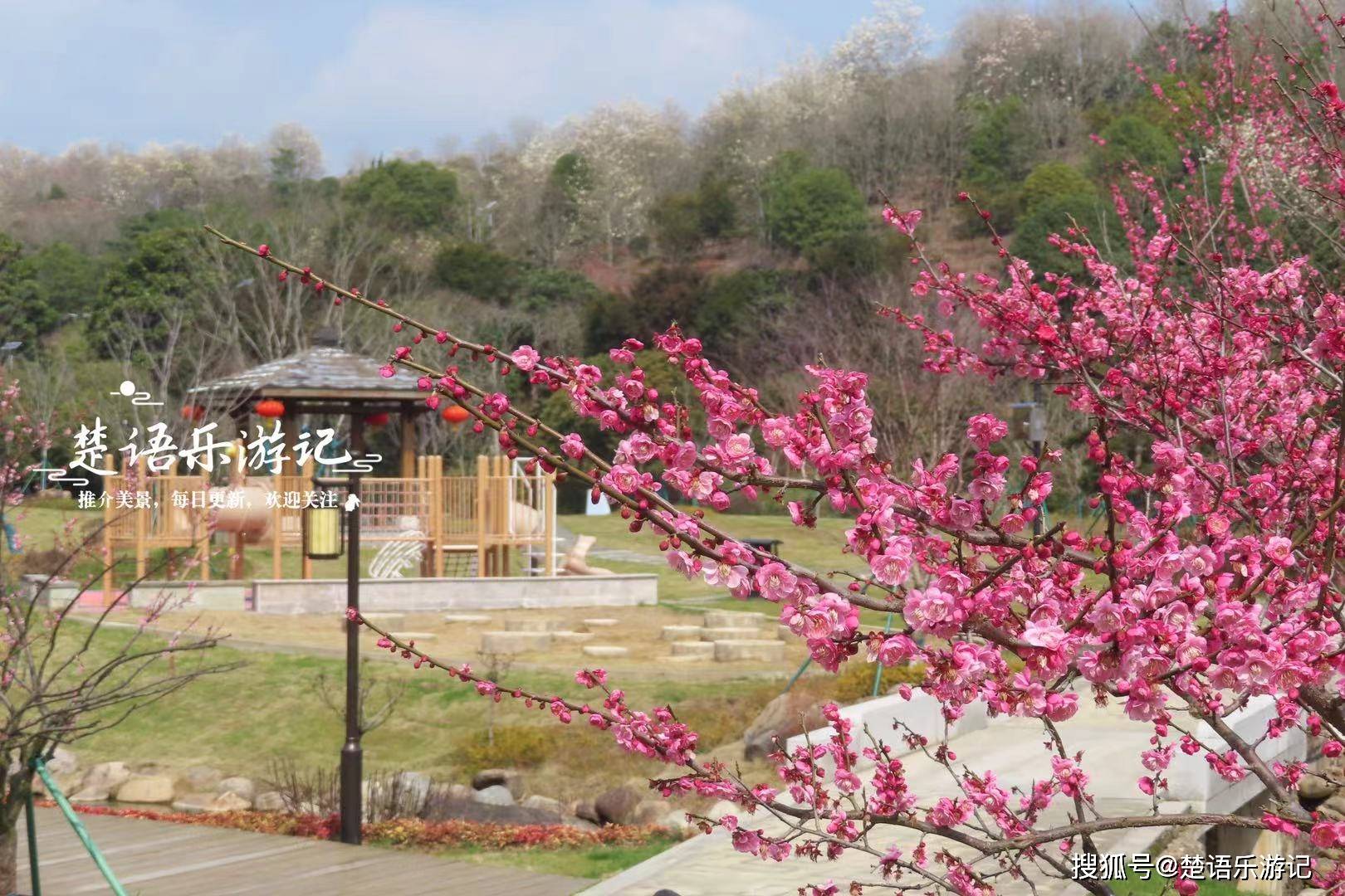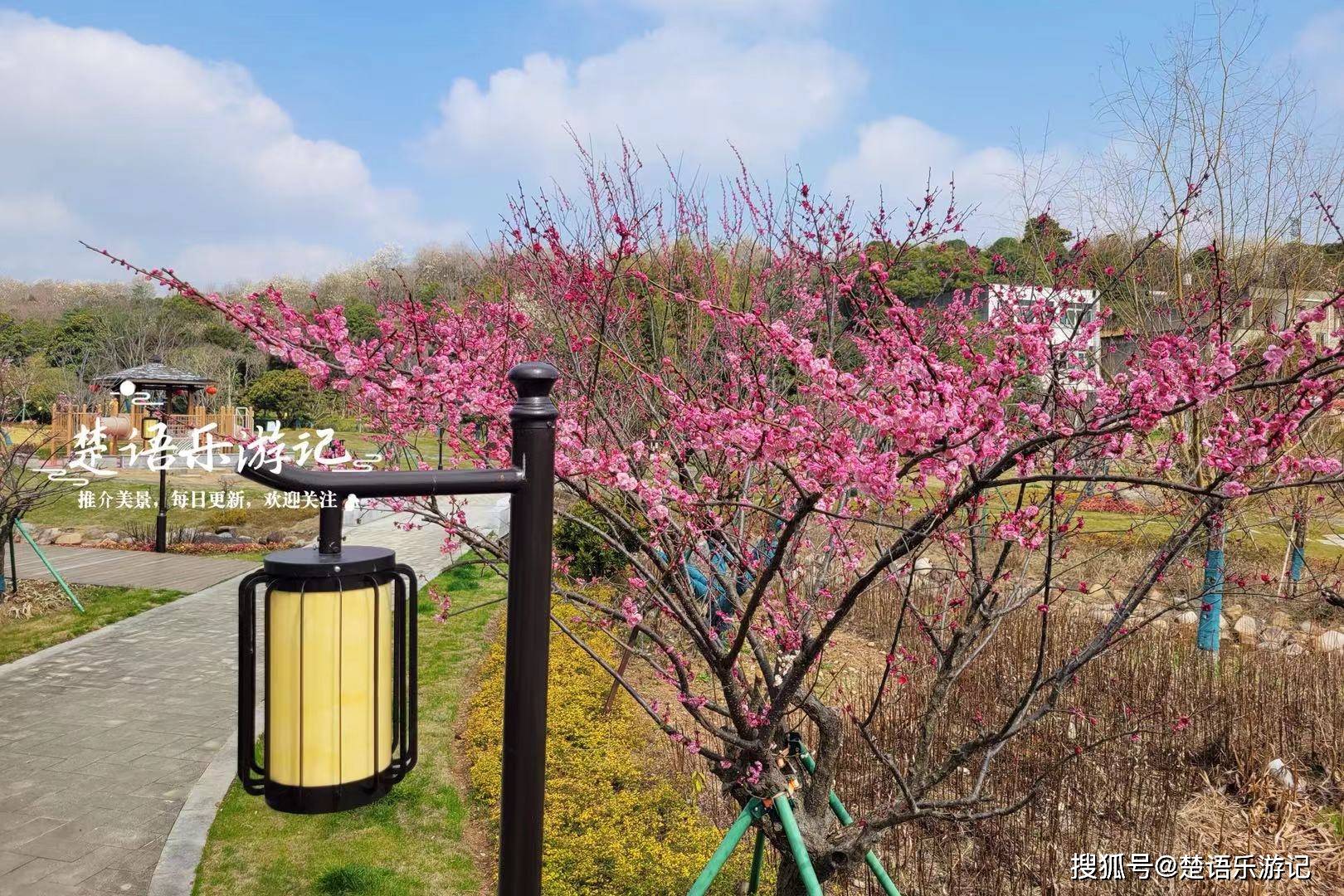 玉兰园的长岭下是一片湿地公园,被称为玉兰谷,谷里有一条人造溪流,两旁是绿地,下游是玉兰湖,道路两旁和湖畔均有大量的梅树。这里的梅花正在盛开,深浅不一的花朵争奇斗艳,其中深粉色的梅花更加美丽。