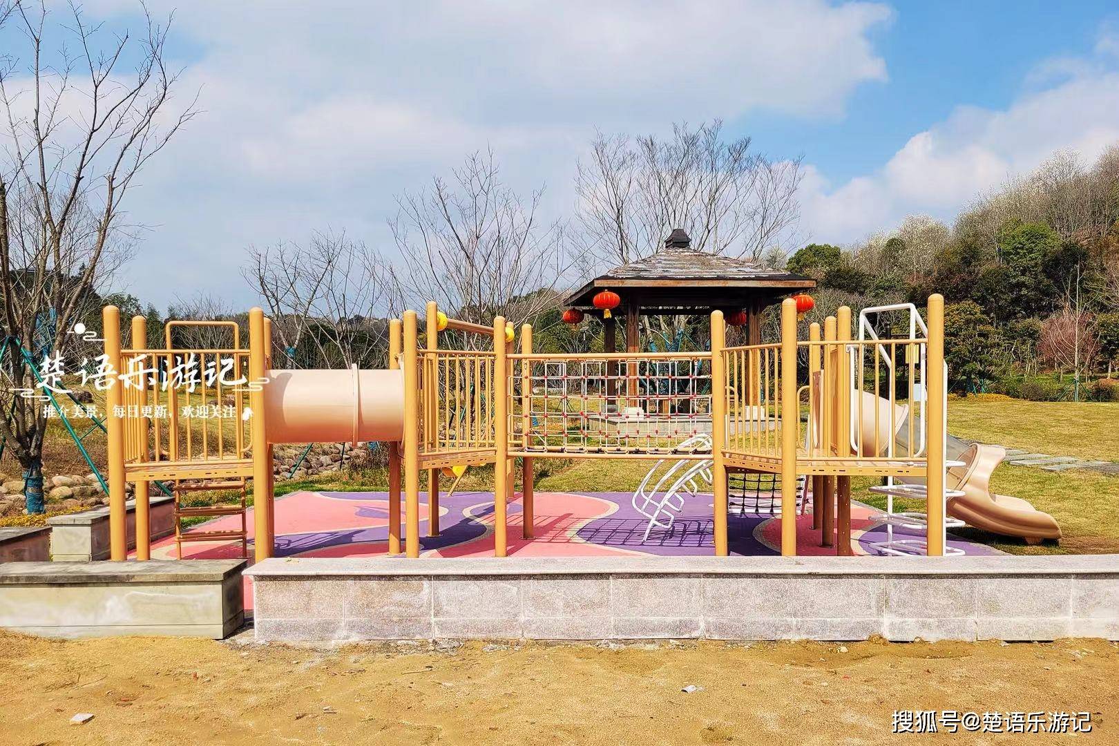 溪水一侧的绿地里有四角凉亭和儿童乐园。凉亭为大人游客提供了很好的休闲场所,儿童乐园有沙滩和滑梯,成为儿童的娱乐天地。因此,这里既适合大人游玩,也适合孩子们玩乐,是一个清幽的遛娃胜地。