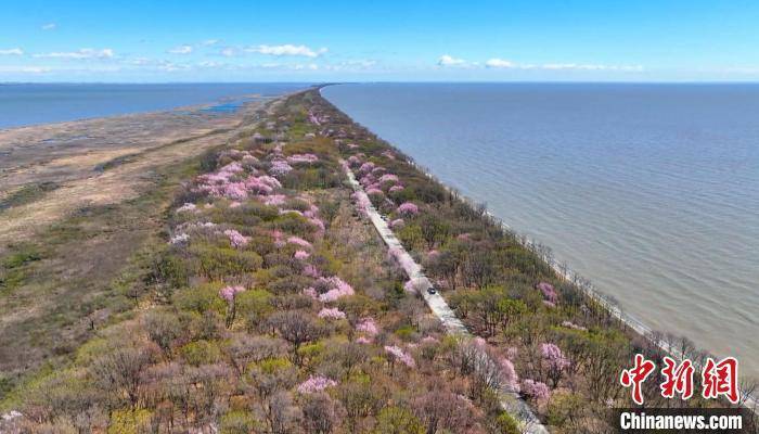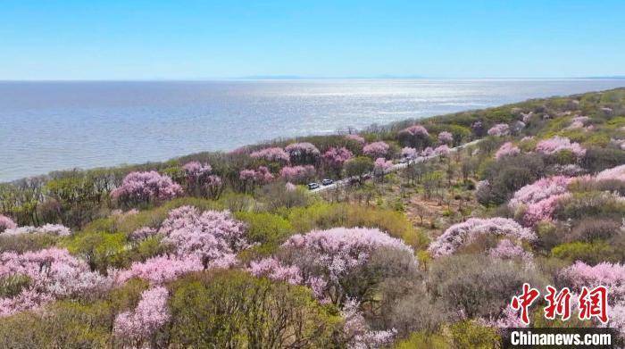 12日,在兴凯湖的湖岗路边,娇嫩的杏花吐露着芬芳,淡粉色的花瓣与蔚蓝色的湖面交相辉映,勾勒着绵延十里的盛美画卷。