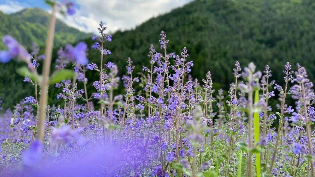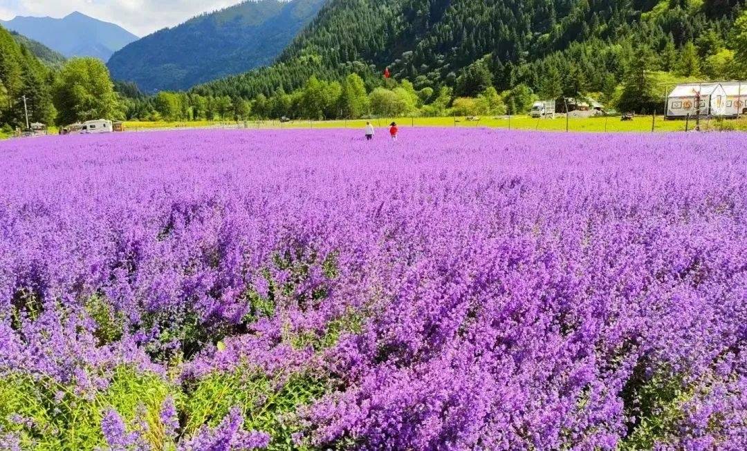 6月,正值薰衣草花期,达古冰川金猴海旁的百亩花海里,薰衣草正在热烈盛放,浪漫紫海,今夏限定!