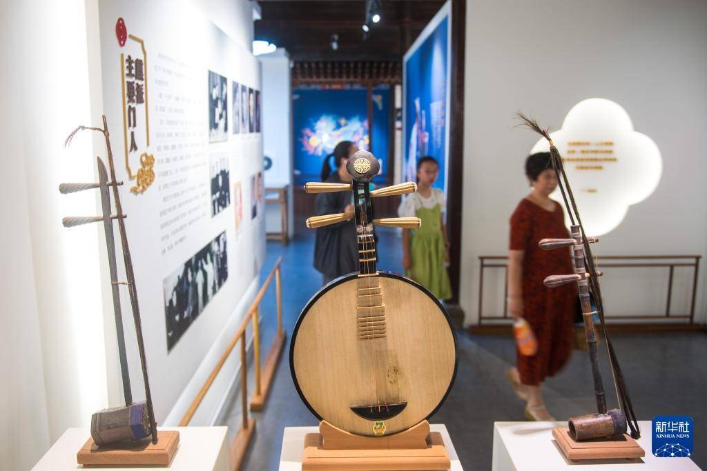 7月9日,游客在宁波慈城古县城内的周信芳戏剧艺术馆参观。