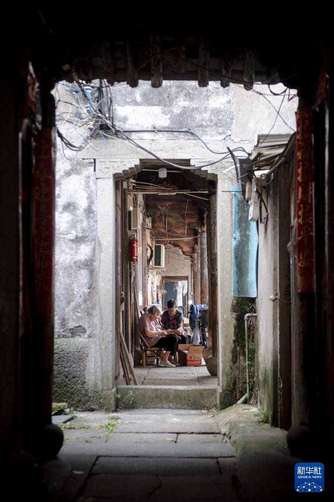 7月9日,老人在宁波慈城古县城的民居内做家务。