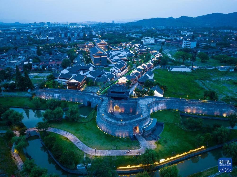 这是宁波慈城古县城大东门夜景(无人机照片,7月10日摄)。