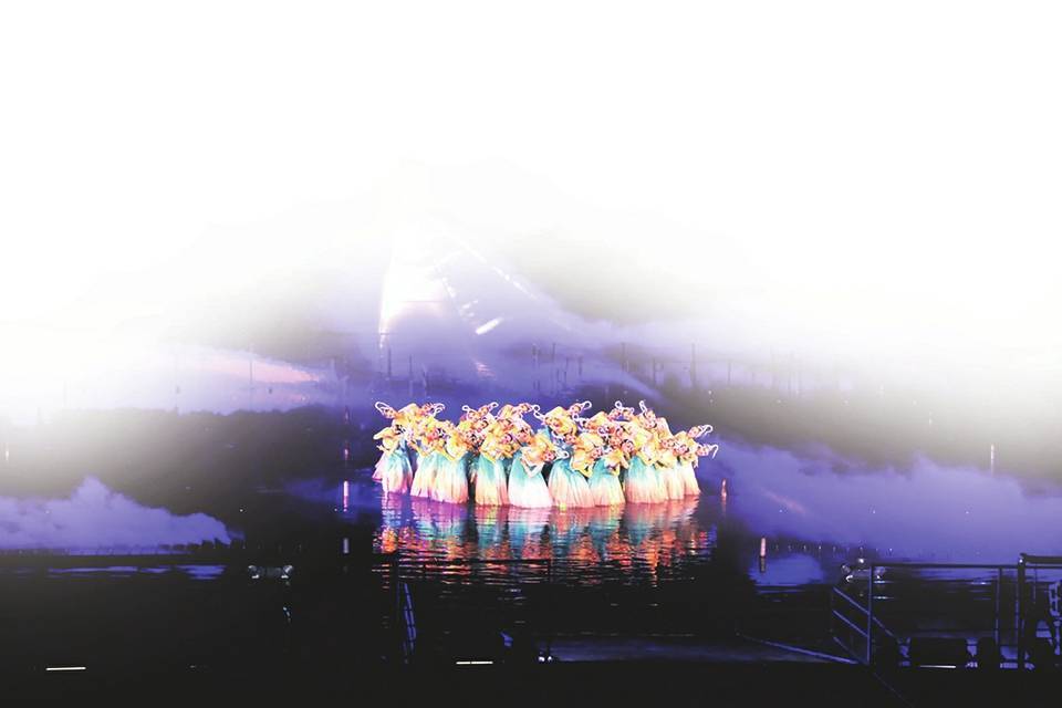 夜幕降临,可以去欣赏大型水上实景演艺《如梦晋阳》。整个剧场好像坐落在一个湖中小岛一般,湖光山色接连一片,喷泉与灯光形成一块块扇形的水幕,好似进入了水帘洞。光、影、歌、舞……营造出如梦似幻的舞台空间,仿佛穿越时空,让人们重见古代晋阳繁华辉煌的模样。