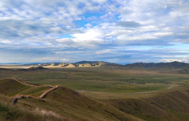 2.桑科草原--秋天的桑科草原呈现出一片耀眼的金黄,沿途散落的牛羊点缀其间,显得格外生动可爱。