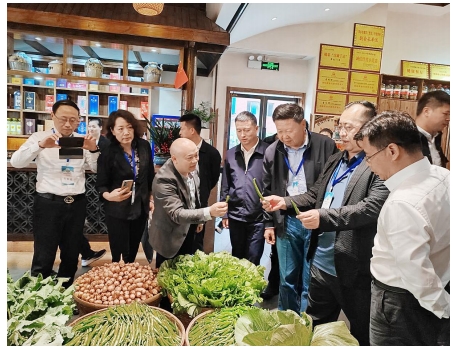 黄矮生态食府负责人(左三)在向客人介绍餐厅选用的辣椒食材