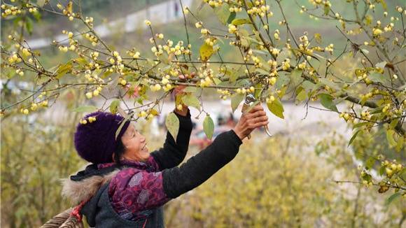 当地花农正在采摘蜡梅(北碚区委宣传部供图)