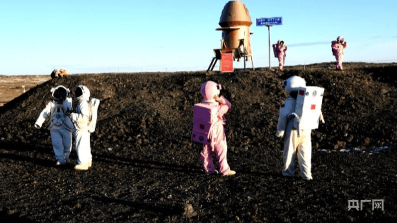 游客身着宇航服漫步火山上体验“登月”感觉(央广网发 周卫兵 摄)