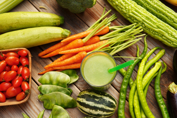 轻畅羽衣甘蓝、纤体苦瓜瓶、超A胡萝卜饮……时下,奶茶店频传砍瓜切菜声,蔬菜“挤进”茶饮配方,饮品单集体“变绿”,掀起一股健康特调风潮。