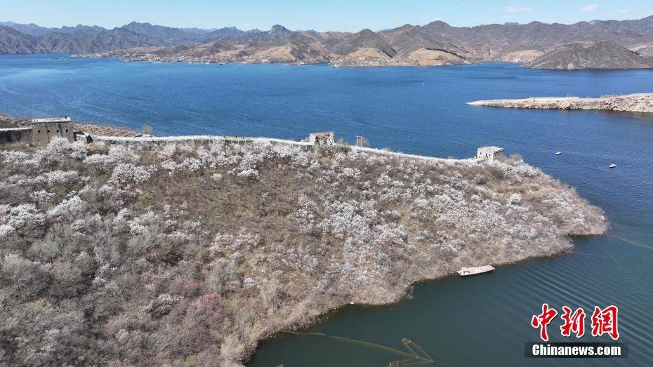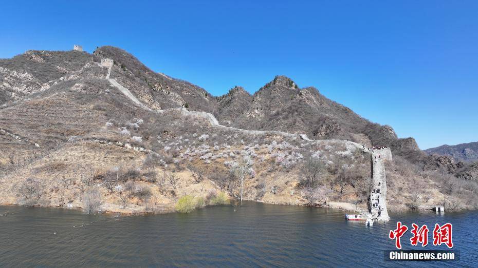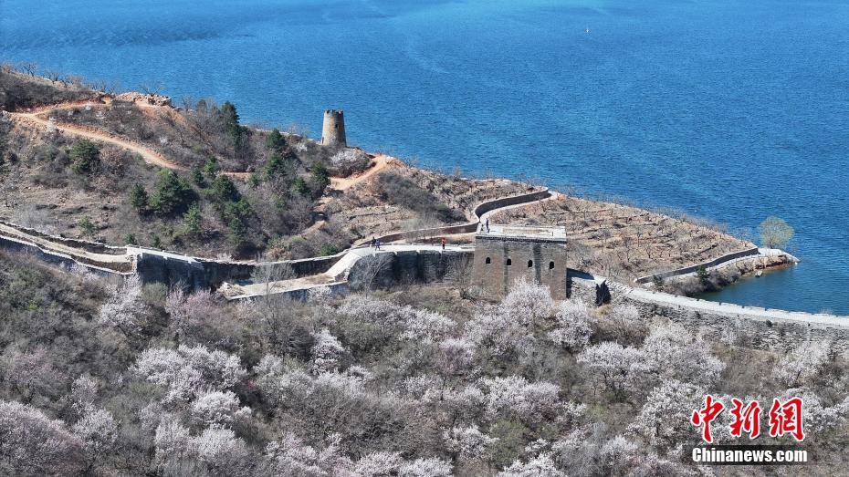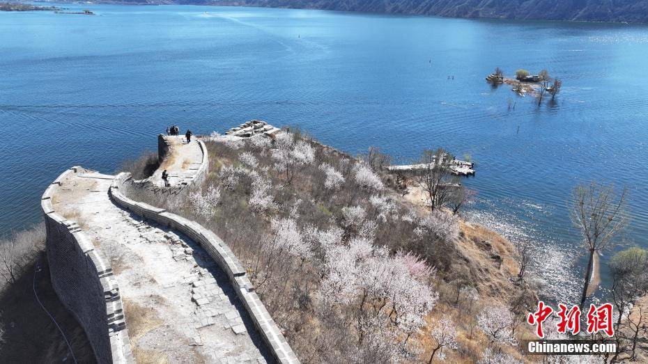 春日暖阳下,河北省宽城满族自治县境内喜峰口“水下长城”两侧的杏花竞相绽放,粉白花瓣缀满枝头。蜿蜒的长城在潘家口水库碧波中时隐时现,游客或乘快艇穿梭于山水间,或登临长城俯瞰花海,镜头定格处,古老的长城与娇嫩杏花交相辉映,构成别样景致。图为4月2日,游客登临河北宽城喜峰口长城赏花游玩。(无人机照片)王立群 摄