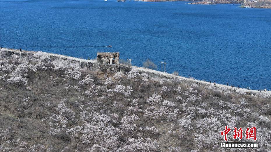 春日暖阳下,河北省宽城满族自治县境内喜峰口“水下长城”两侧的杏花竞相绽放,粉白花瓣缀满枝头。蜿蜒的长城在潘家口水库碧波中时隐时现,游客或乘快艇穿梭于山水间,或登临长城俯瞰花海,镜头定格处,古老的长城与娇嫩杏花交相辉映,构成别样景致。图为4月2日,河北宽城喜峰口长城漫山杏花绽放,与潘家口水库相映成趣。(无人机照片)王立群 摄