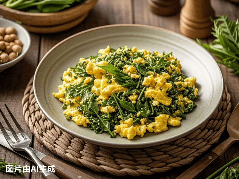 材料:香椿100g,鸡蛋3个,盐2g,食用油15ml