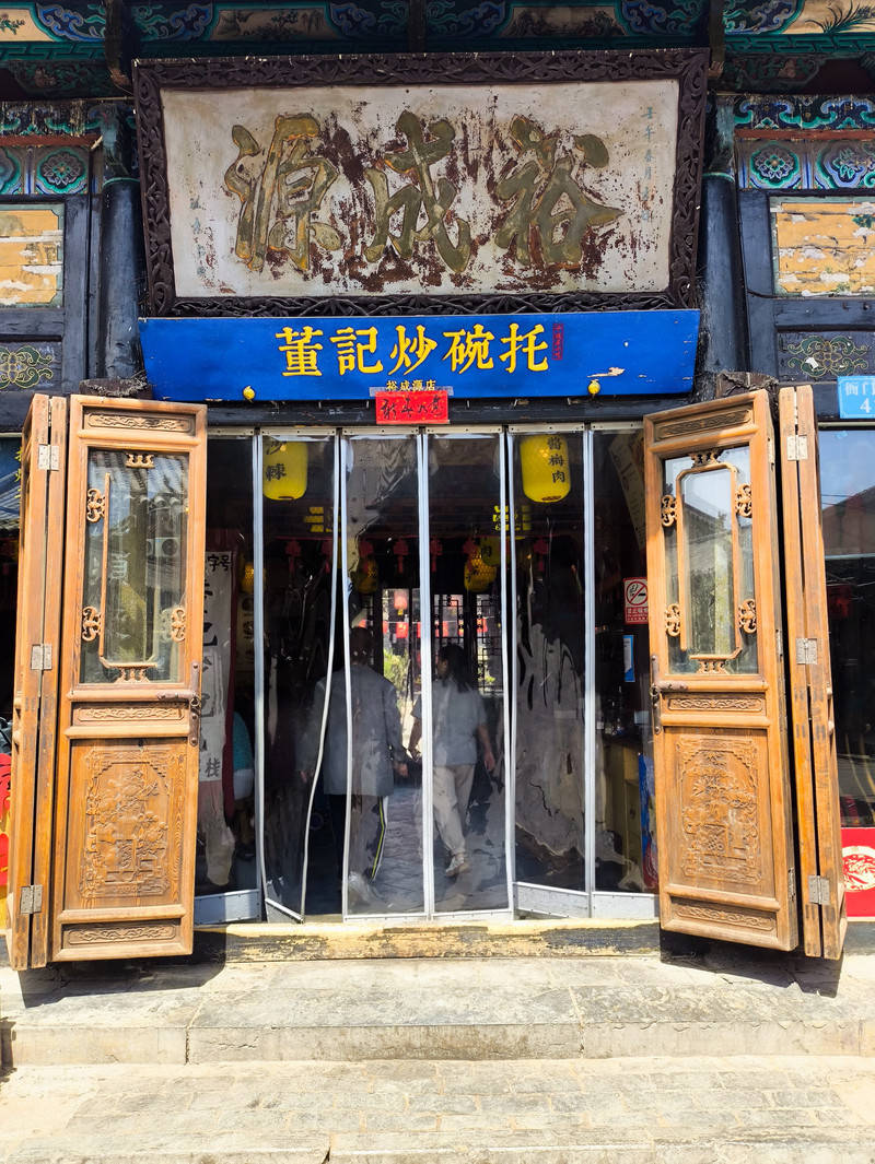 位于平遥古城南大街84号,是古城内top3的晋菜馆。他家的招牌菜真的非常好吃了,推荐必点:老陈醋焖牛肉(肉炖的软烂入味,微酸带甜,裹着满满的酱汁)、香醋鸡蛋(刚看到以为是豆腐,鸡蛋很嫩,很香的醋味)、黄米凉糕(黄小米和糯米做的,夹杂着蔓越莓和葡萄干,蘸着桂花蜜酸甜软糯;清凉软糯)、糖醋丸子、浇汁栲栳栳(莜面做的,栲栳栳软糯,味道微酸)、酸汤莜面鱼鱼(莜面“小鱼”很筋道,酸汤暖胃养身)