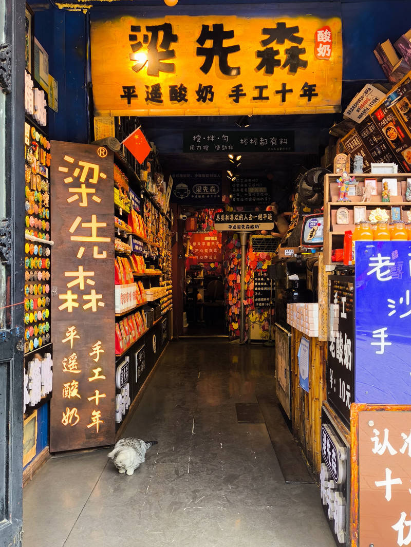 位于平遥古城南大街92号,是古城内的一家网红小店,店内精致又温馨,酸奶和冰箱贴都是老板自制的。他家的沙棘酸奶一定要尝尝,醇香浓厚的手工酸奶上铺满了酸酸甜甜的沙棘果,喝的时候要搅拌均匀~老陈醋酸奶是山西特色,但是不喜欢吃醋的朋友不一定喝的惯~还有沙棘酸奶冰面包,有点甜但是不会腻,有点凉但是不会冰,可以吃到很多沙棘果,非常好吃的一款面包
