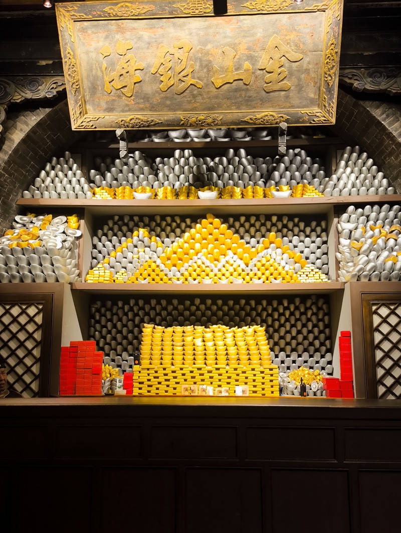协同庆钱庄最吸引人的地方莫过于其神秘的地下金库 。地下金库位于五院下方 ,通过一条狭窄的通道进入 ,里面空间宽敞,由多个窑洞组成 ,当年这里储存着数量众多的黄金白银。如今,地下金库虽然已不再存放金银,但依然保留着当年的布局和设施 ,还摆放了一些仿制的金银财宝,让游客们可以一窥当年的财富盛况 。据说,地下金库中还有一根樟木雕刻的神龙宝柱 ,是明太祖朱元璋时期的文物 ,也是平遥的镇城之宝 ,很多游客都会前来摸摸这根宝柱,沾沾财气。