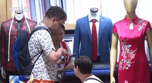 除了中式礼物,240小时免签政策直接拉长了外国游客的购物时间,不少人还专程来定制一套中式礼服。一位秘鲁游客表示,“我在北京已经待了一周了,这里有非常优秀的裁缝,定制服务很好,质量和价格也很好,物美价廉。”