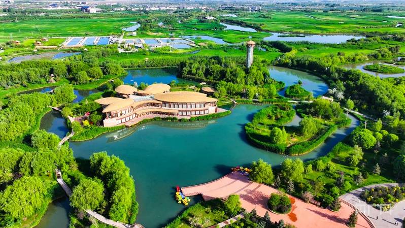 张掖国家湿地公园碧波荡漾、绿意盎然(央广网发 殷旭 摄)(来源:央广网 作者:魏晋雪 殷旭)