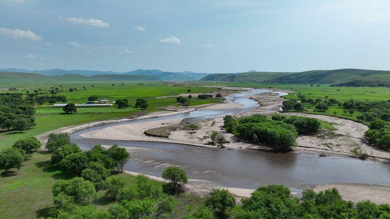 图为科尔沁右翼前旗乌兰毛都草原夏日风光(无人机照片)。新华社记者 贝赫 摄