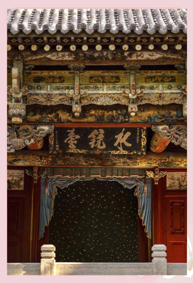 - 水镜台:始建于明代,是当时演戏的舞台,前部为单檐卷棚顶,后为重檐歇山顶。
