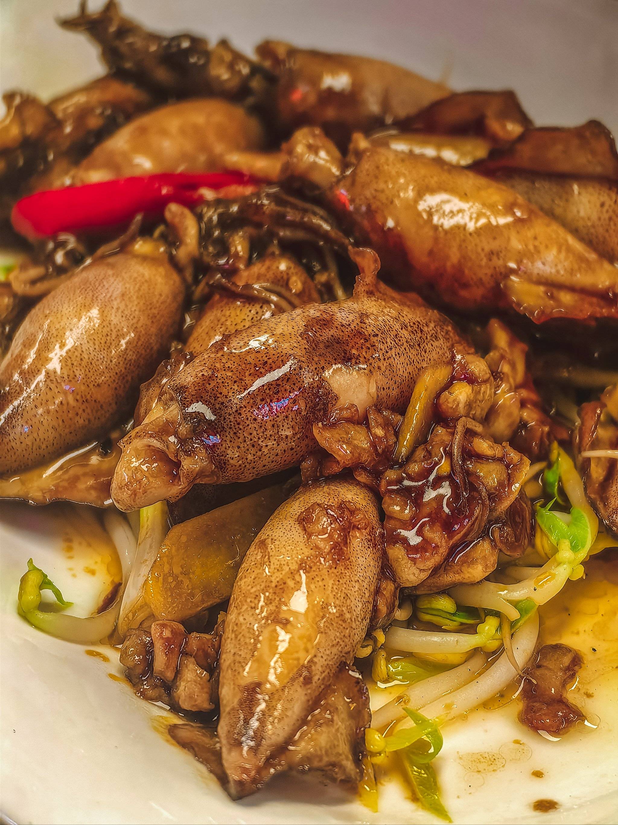 姜葱炒蟹:膏蟹或肉蟹切块,加姜葱爆炒,蟹肉鲜甜,酱汁下饭。