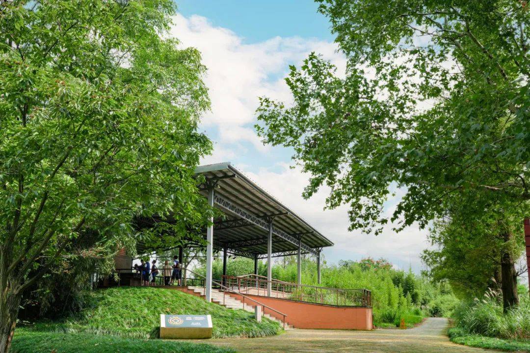若是从东门入园,一路向北抵达雉山驿站,山风穿堂而过,带走暑气。在这座林间驿站可静坐、小憩,看窗外白鹅浮绿水,探索良渚刻画符号,品尝一杯清冽甘甜的冷泡茶,享受夏日惬意。