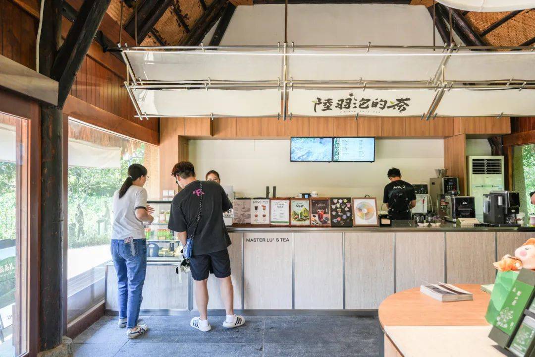 从反山展示馆出来,不妨到“就爱搭茶”坐坐。这座隐匿在树荫下的茶饮空间,落地窗将室外的绿意框成天然画卷,空调送出的凉风裹挟着淡淡的茶香,瞬间驱散“暑气”。